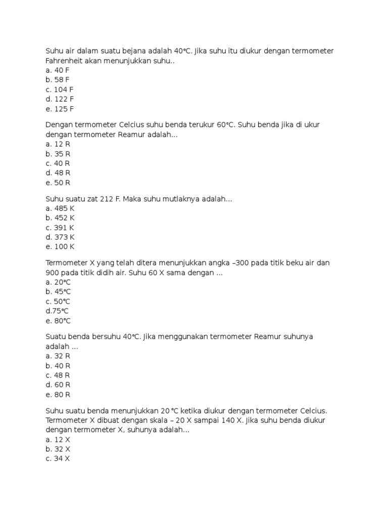 Soal Dan Jawaban Suhu Dan Termometer Sridianti Com
