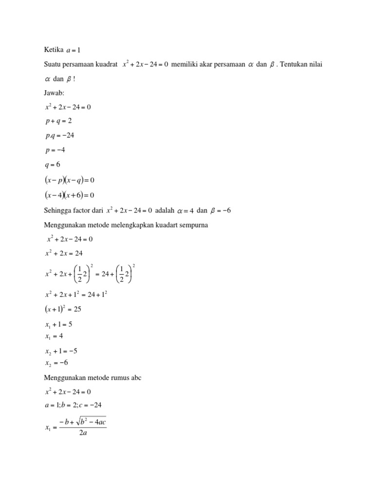 Tentukan Akar Persamaan Kuadrat X2 10x 24 0 Dengan Cara Kuadrat Sempurna