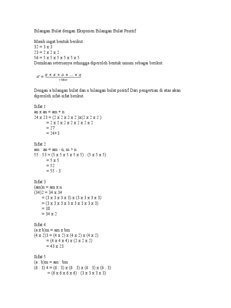 Bilangan Bulat Dengan Eksponen Bilangan Bulat Positif