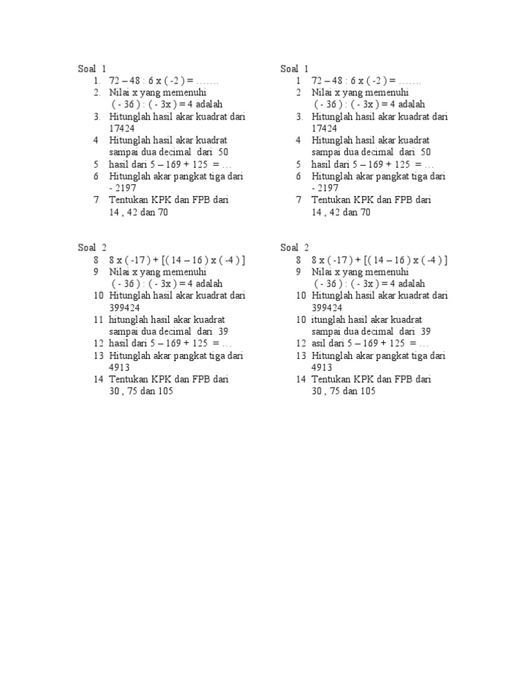 Akar Kuadrat Matematika Bersama Soal Soal Dan Jawaban