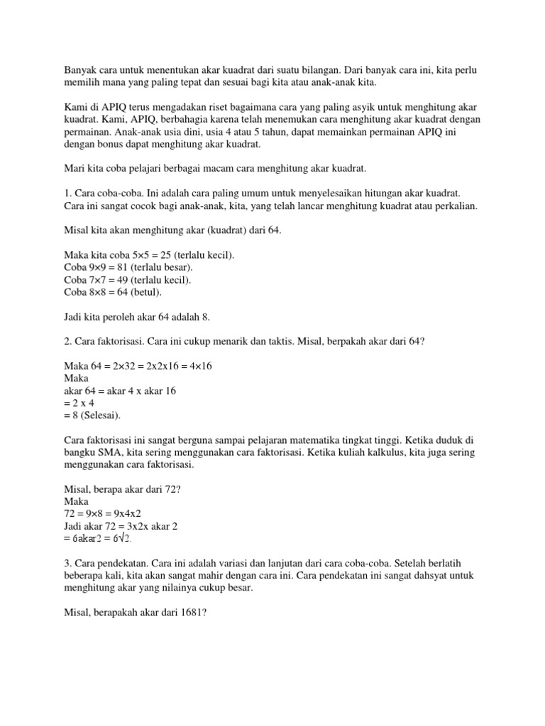 Cara Menghitung Akar Kuadrat Secara Manual