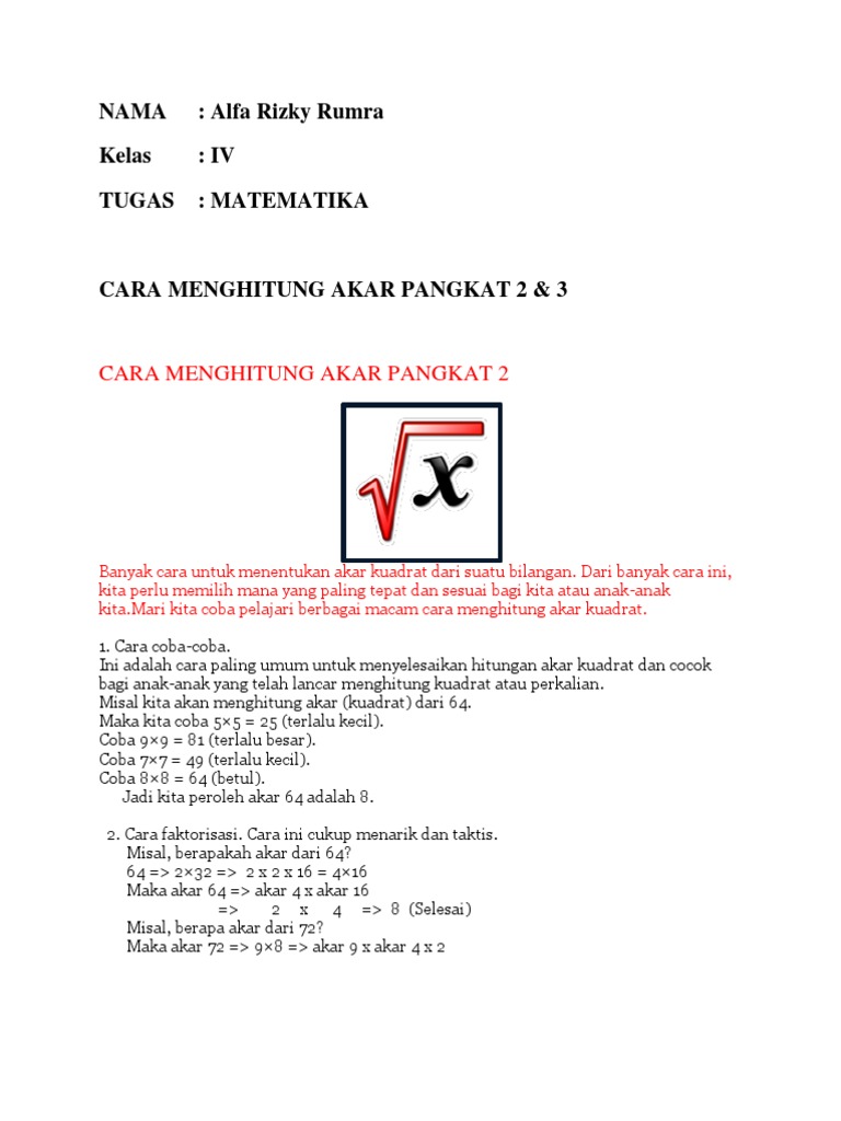 Belajar Matematika Dan Ipa Akar Kuadrat Akar Pangkat 2 Bagian 2