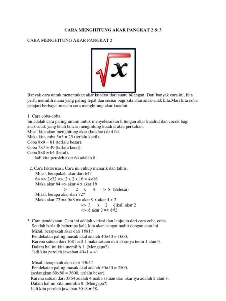 Akar Kuadrat Matematika Bersama Soal Soal Dan Jawaban