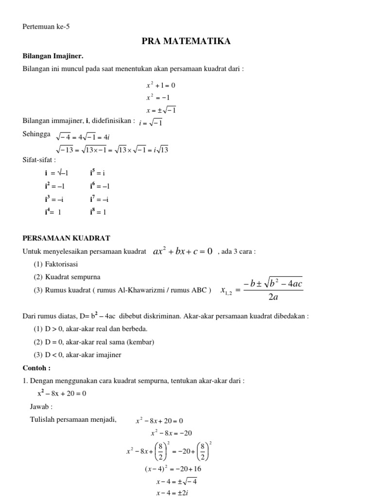 Materi Persamaan Kuadrat Rumus Akar Contoh Soal