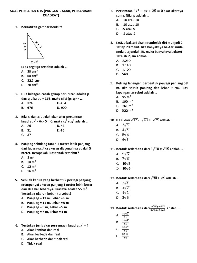 Soal Persiapan Pts Mtk Kelas 9