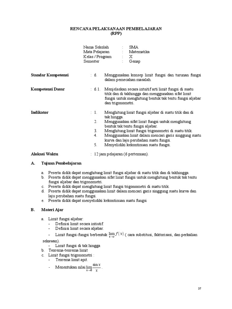 Rpp Matematika Sma Limit Ips Doc Document