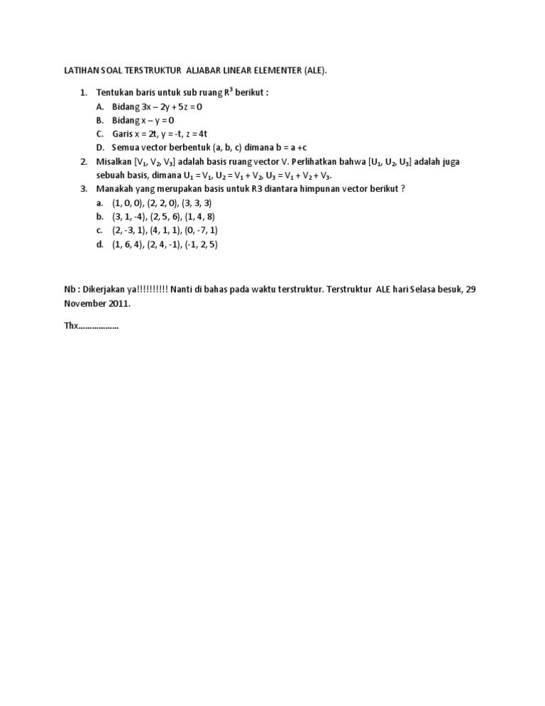Latihan Soal Terstruktur Aljabar Linear Elementer