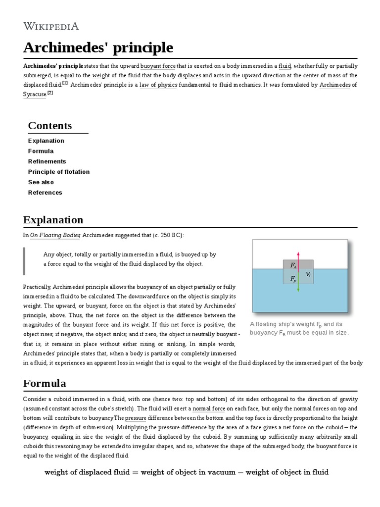 Archimedes Principle Definition Formula Examples Science Class Video Study Com