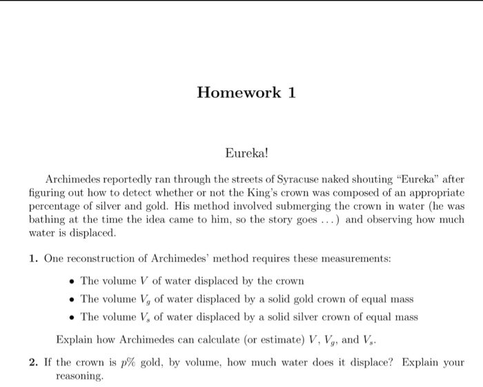Solved Homework 1 Eureka Archimedes Reportedly Ran Throu Chegg Com