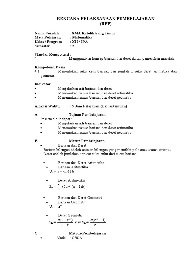 Doc Contoh Soal Barisan Dan Deret Aritmatika Geometri Windrayanto Cahyo Academia Edu