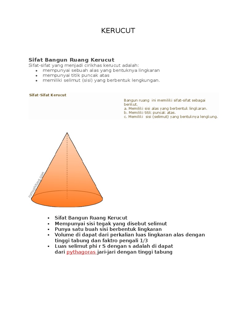 Makalah Bangun Ruang Kerucut Jaring Jaring Sifat Luas Permukaan Volume Penerapannya Kampung Ilmu Artikel Motivasi Motivasi Belajar Materi Pelajaran