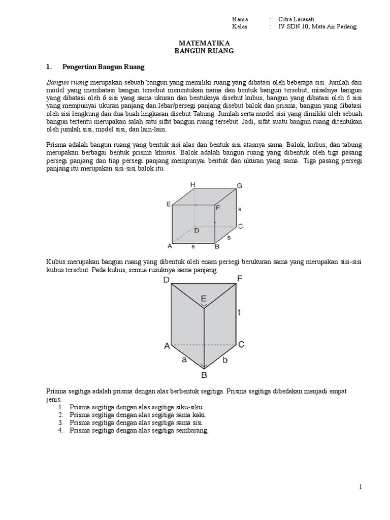 Bangun Ruang Merupakan Sebuah Bangun Yang Memiliki Ruang Yang Dibatasi Oleh Beberapa Sisi Jumlah Dan