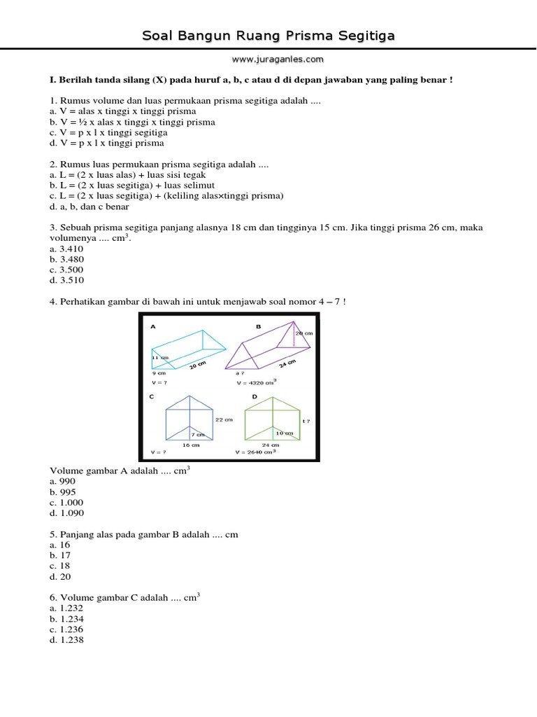 Soal Bangun Ruang Prisma Segitiga Pdf