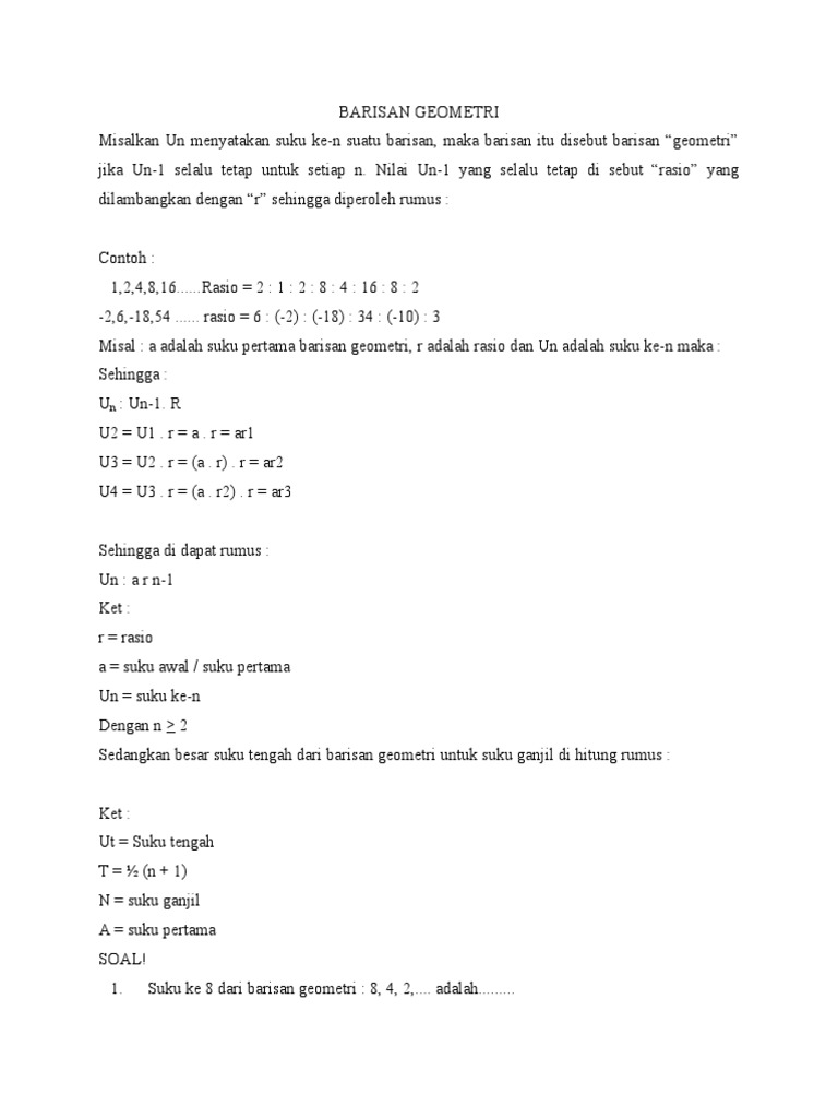Rumus Barisan Geometri Dan Contoh Soalnya Blog Teknisi