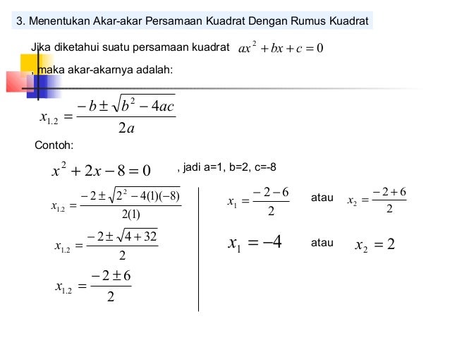 Rumus Persamaan Kuadrat Penyelesaian Akar Dan Contoh Soal