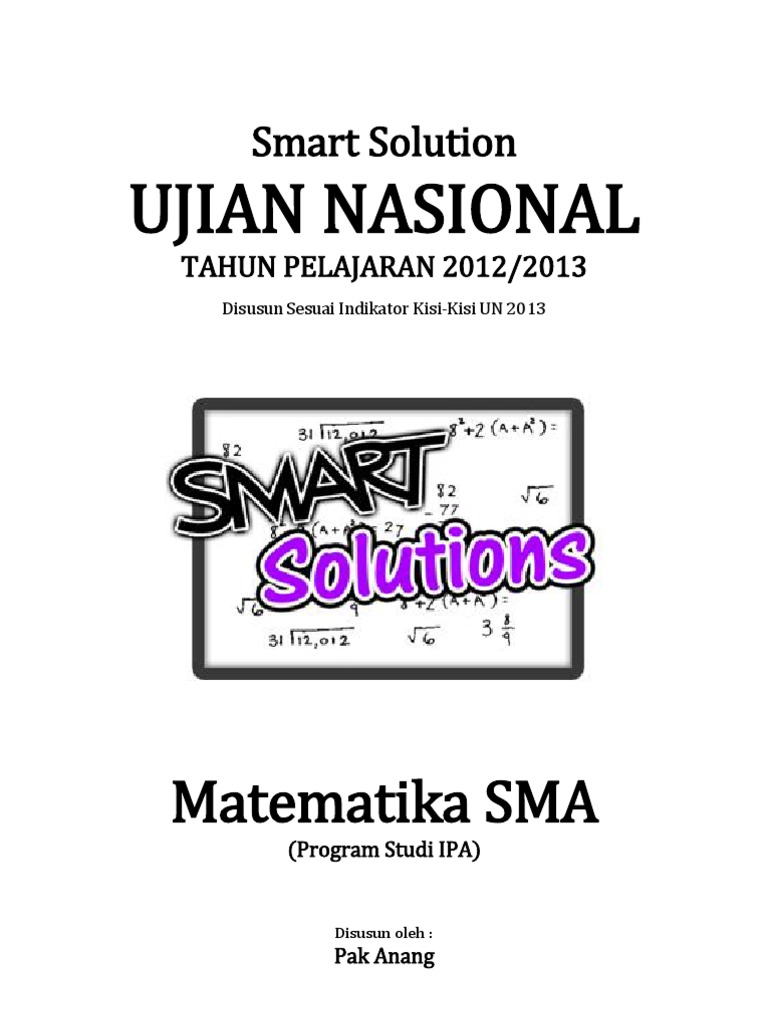 Smart Solution Un Matematika Sma 2013 Skl 2 2 Rumus Jumlah Dan Hasil Kali Akar Akar Persamaan Kuadrat Pdf Document