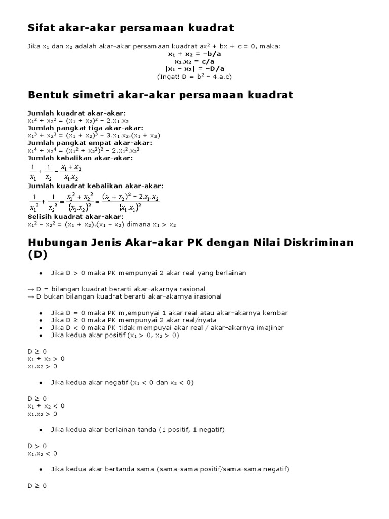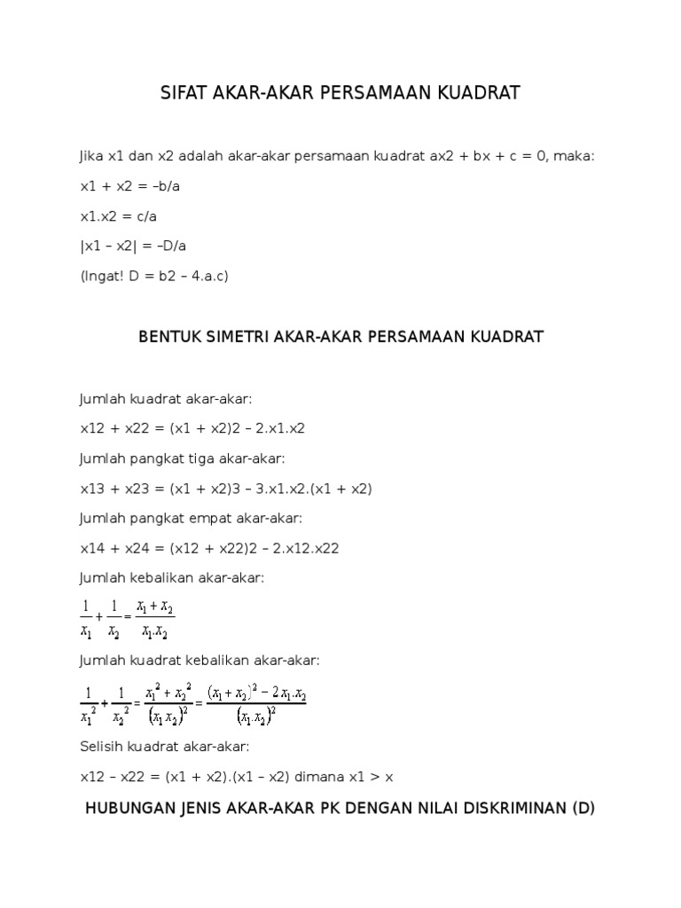 Bentuk Bentuk Simetris Akar Akar Persamaan Kuadrat Berbagi Ilmu