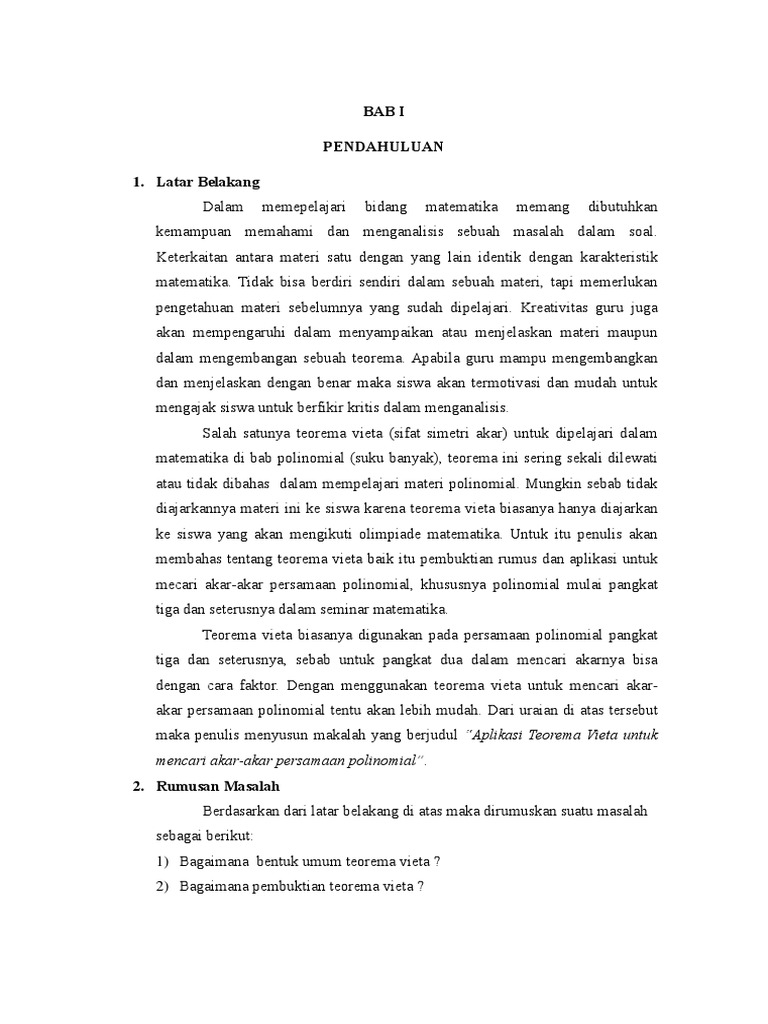 Seminar Matematika Teorema Vieta Sifat Simetri Akar
