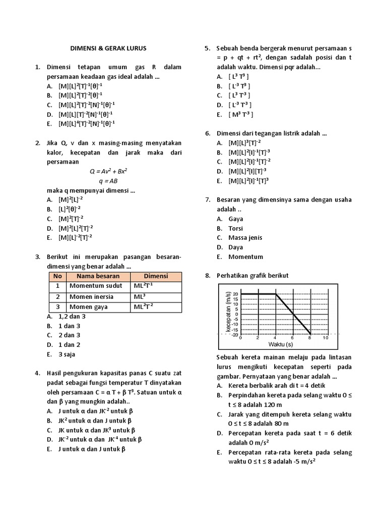 Contoh Soal Dimensi Fisika Suhari Fisika Sma 10 Semarang