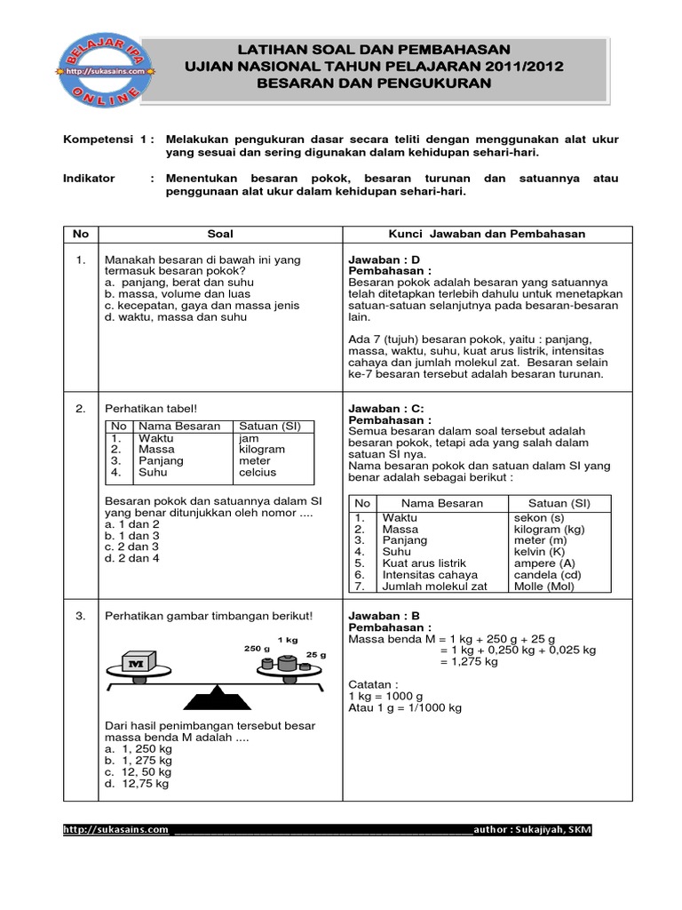 Latihan Soal Dan Pembahasan Besaran Dan Satuan 1