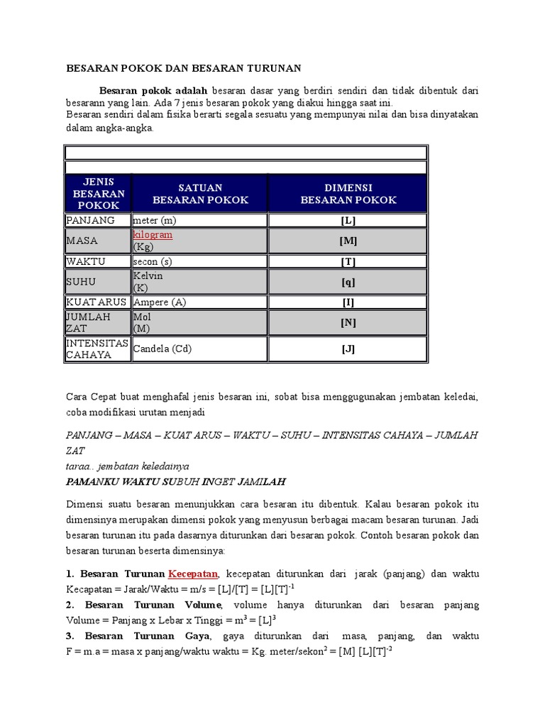 Dimensi Besaran Pokok Dan Besaran Turunan Docx Document