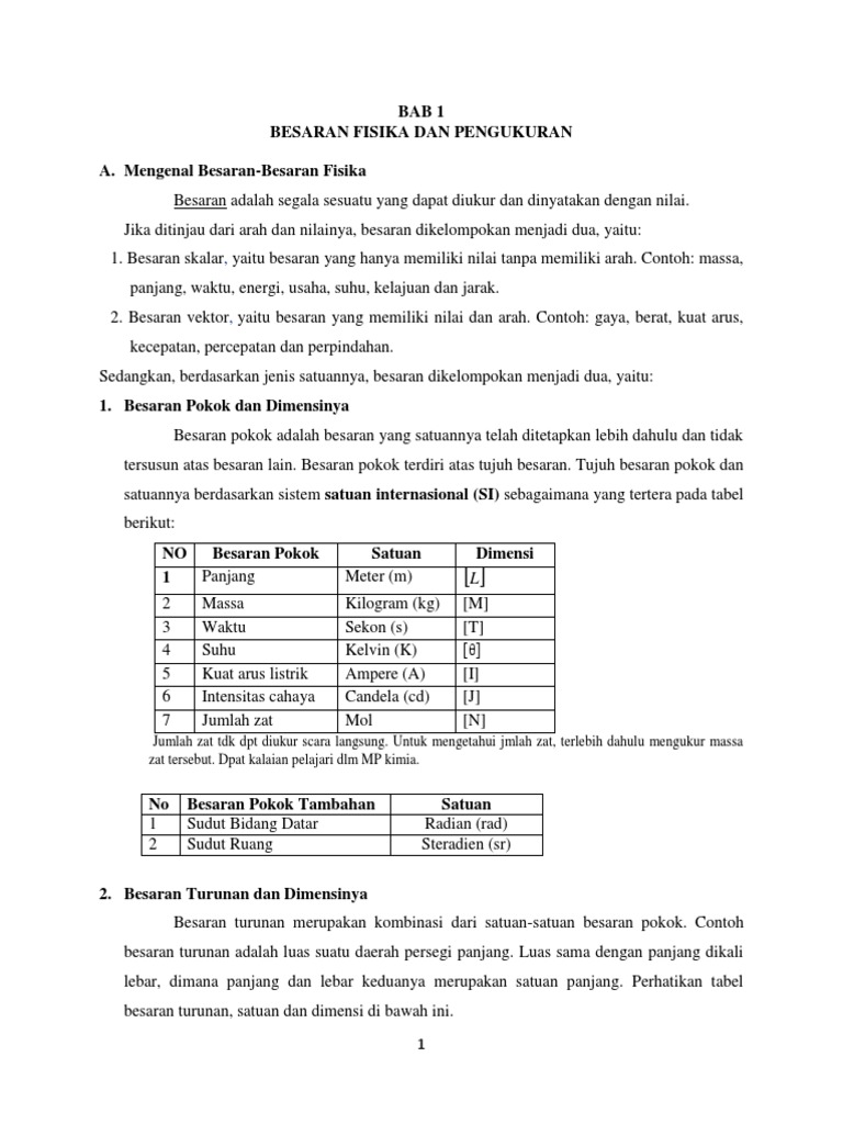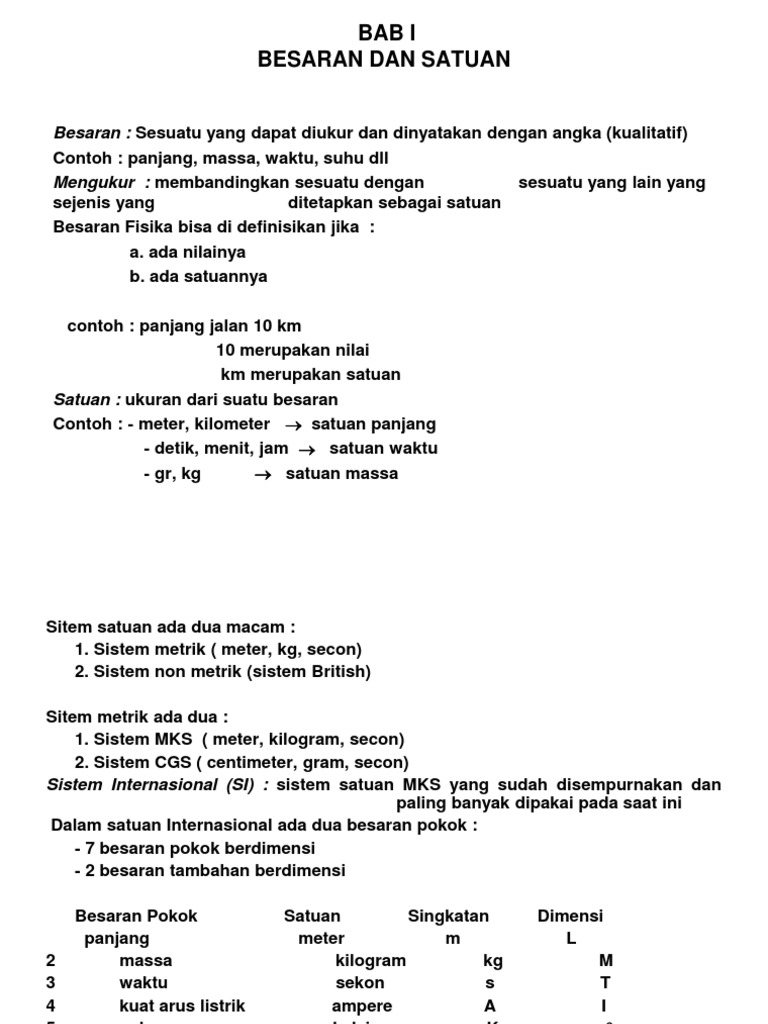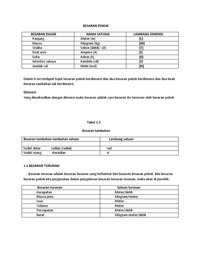 1 Menentukan Besaran Pokok Besaran Turunan Dan Selain 7 Besaran Pokok Besaran Yang Lain Merupakan Besaran Turunan Yang Satuannya Tergantung Dari Satuan Satuan Besaran Pokok Yang Pdf Document
