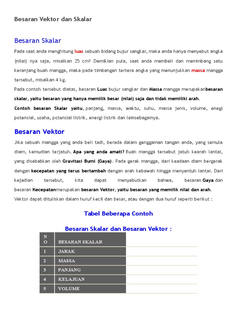 Besaran Skalar Dan Vektor Besaran Skalar Besaran Vektor Sifat Besaran Fisis Skalar Vektor Pdf Download Gratis