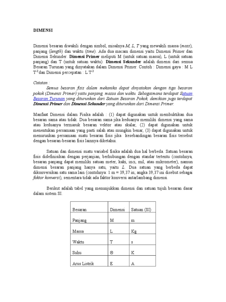 Doc Dimensi Besaran Turunan Denok Oktawila Academia Edu