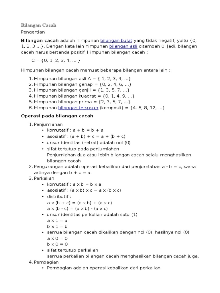 Bilangan Cacah Dan Operasinya Rumus Matematika