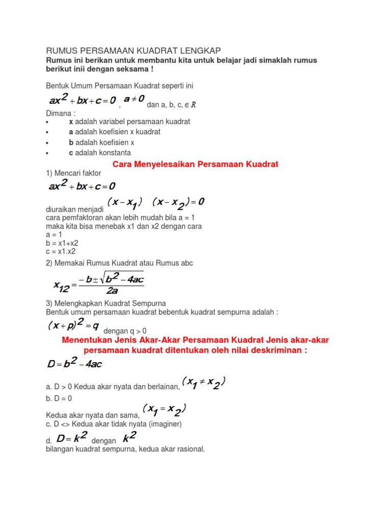 Rumus Persamaan Kuadrat Lengkap Docx