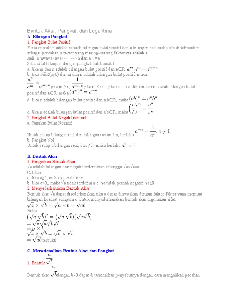 Bentuk Akar Pangkat Dan Logaritma