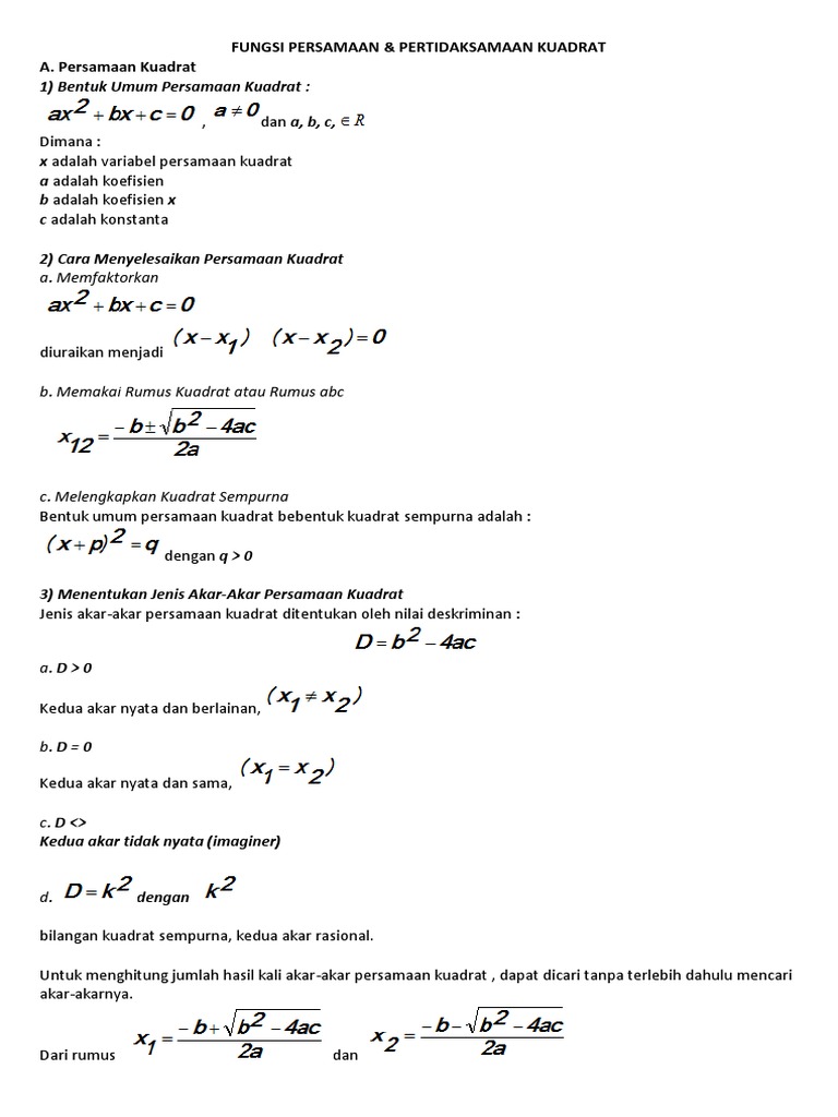 Materi Persamaan Kuadrat Kelas X Sma Coretan Tintaku