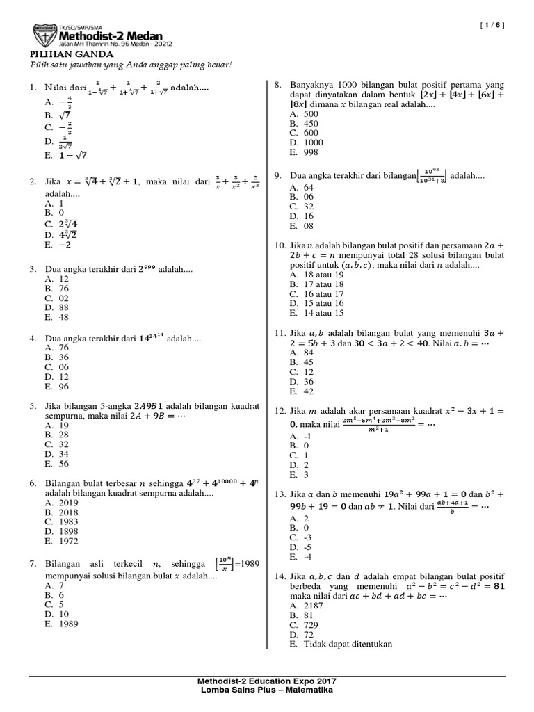 Soal Dan Pembahasan Latihan Olimpiade Nasional Smp 1 10 Istana Mengajar