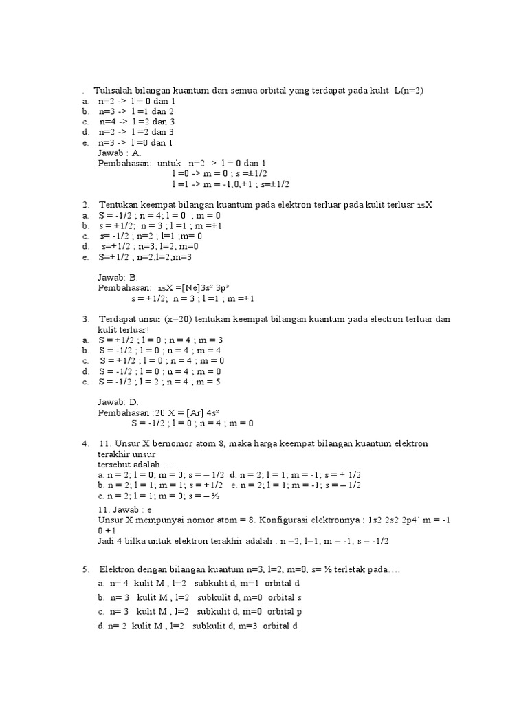 Contoh Soal Dan Jawaban Bilangan Kuantm Dan Konfigurasi Elektron Word Ilmusosial Id