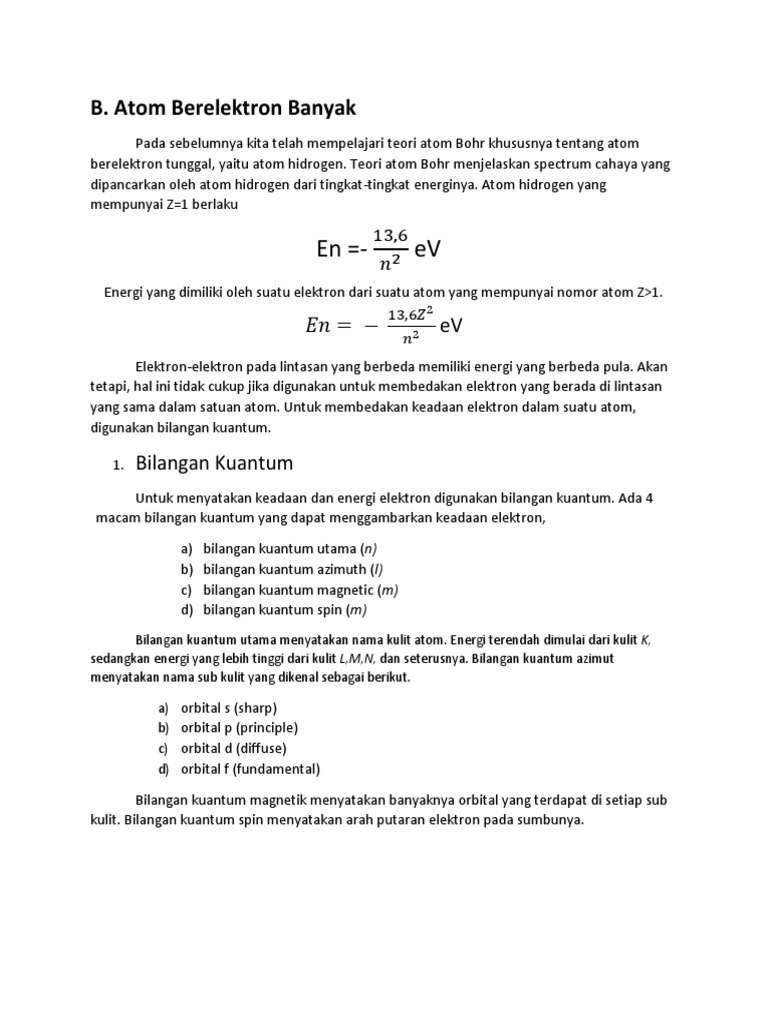Kim Bilangan Kuantum 1 Bilangan Kuantum Bilangan Kuantum A Pendahuluan Bilangan Kuantum Adalah Suatu Harga Yang Menyatakan Keadaan Orbital Suatu Atom Pdf Document