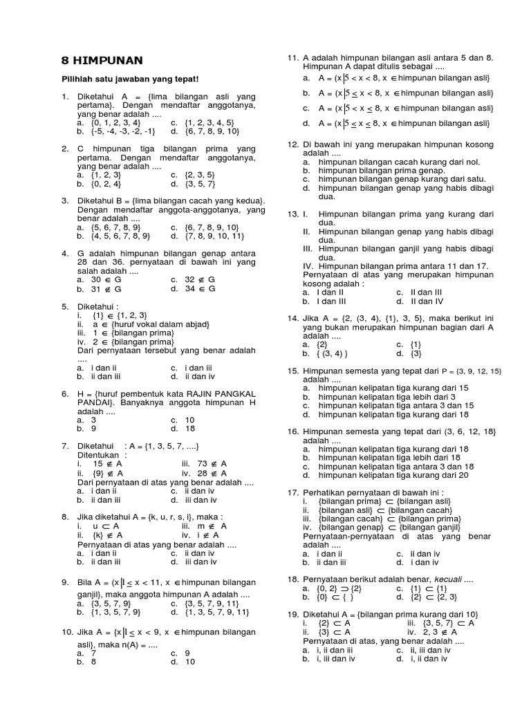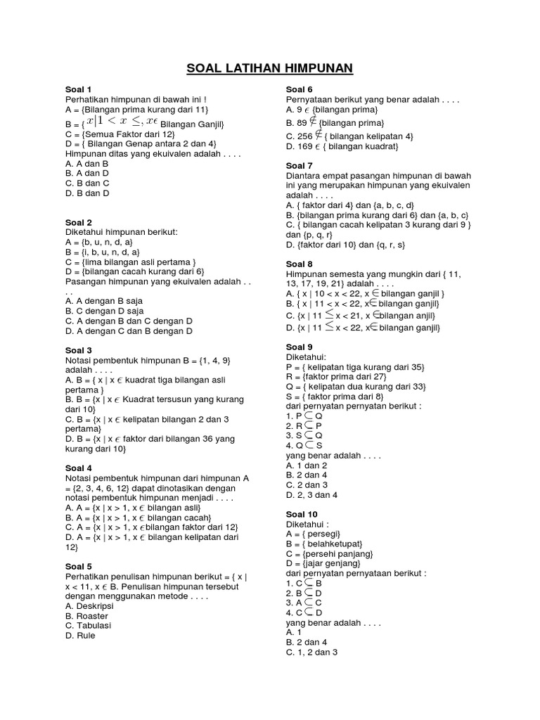Bank Soal Matematika Smp Himpunan Pdf Document