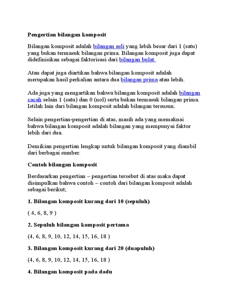 Bilangan Komposit Adalah Bilangan Asli Lebih Besar Dari 1 Yang Bukan Merupakan Bilangan Prima
