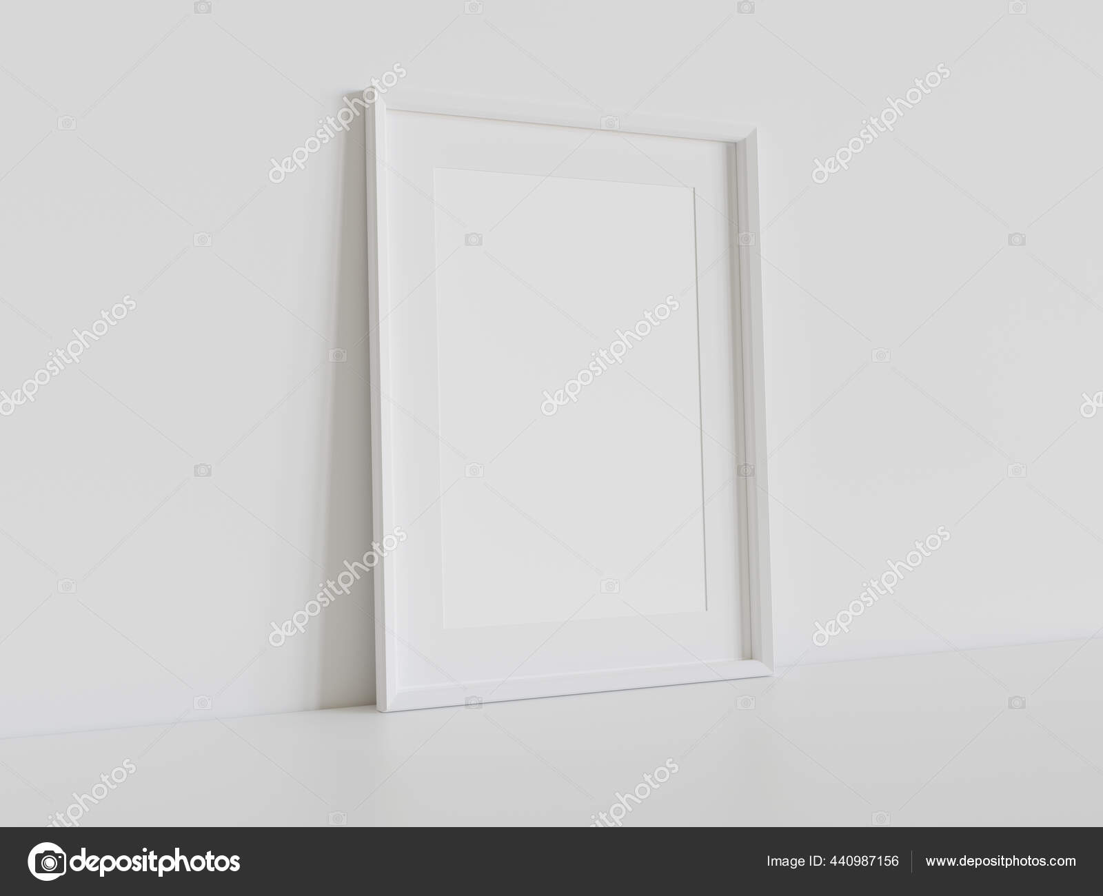 Bingkai Persegi Panjang Putih Bersandar Lantai Putih Mockup Interior Templat Stok Foto C Sdecoret 440987156
