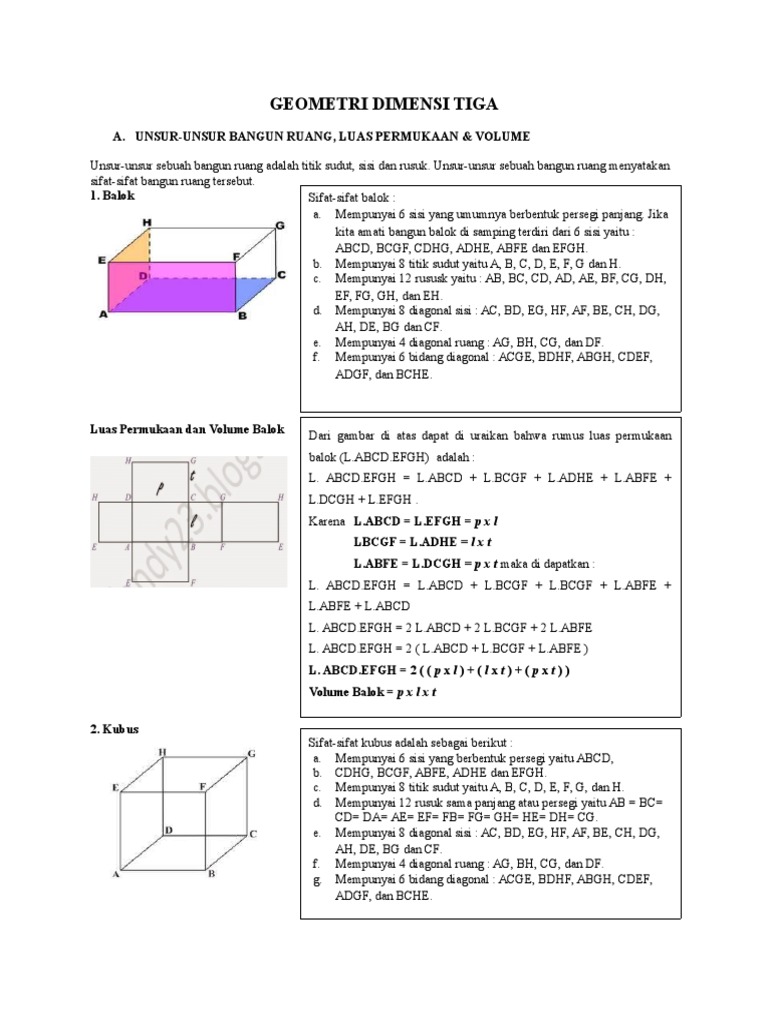 Dimensi Tiga Bangun Ruang Dan Unsur Unsurnya