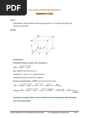 Soal Jawab Matematika Peminatan Dimensi Tiga Sebuah Kubus Abcd Efgh Memiliki Panjang Rusuk 4 Cm P Adalah Titik Tengah Cd Tentukan Panjang Ep Pdf Download Gratis