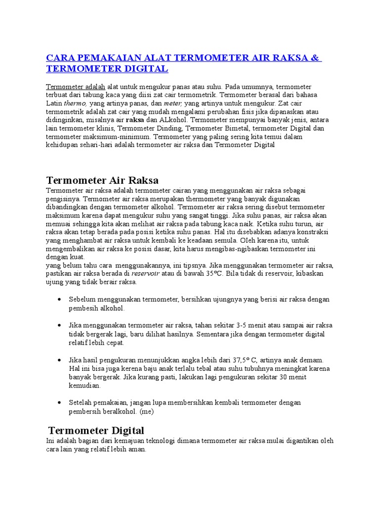 Umi Latifah Cara Pemakaian Alat Termometer Air Raksa Termometer Digital