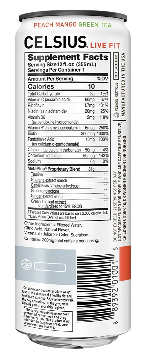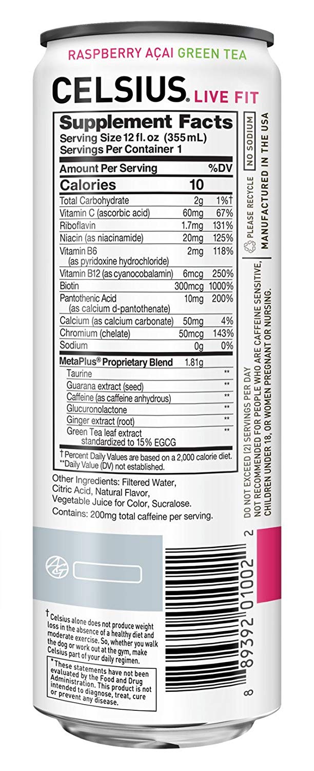 32 Celsius Drink Nutrition Label Labels Database 2020