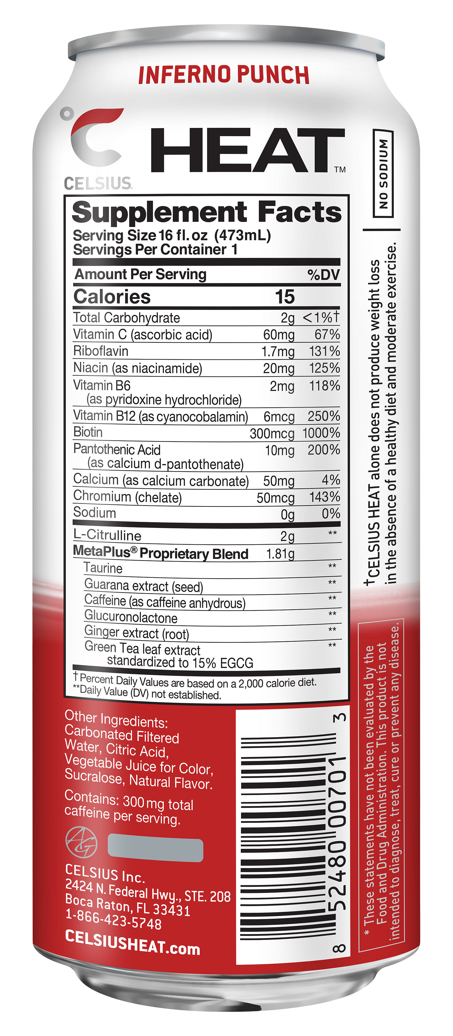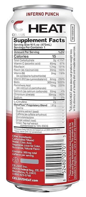 Amazon Com Celsius Heat Inferno Punch Performance Energy Drink Zero Sugar 16oz Can Pack Of 12 Health Personal Care