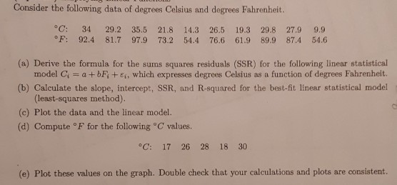 Solved Consider The Following Data Of Degrees Celsius And Chegg Com