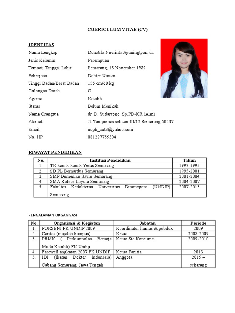 Contoh Curriculum Vitae Dokter Gawe Cv