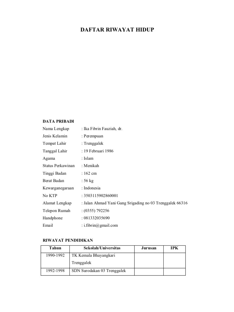 Contoh Daftar Riwayat Hidup Dokter Umum Rasmi F