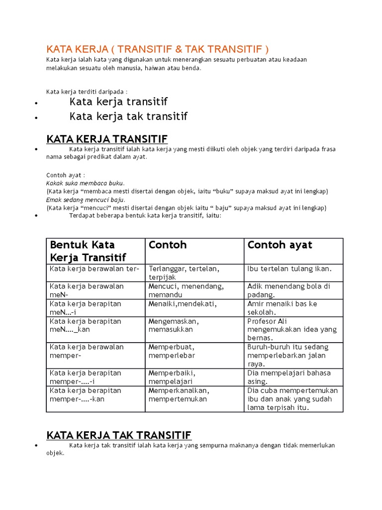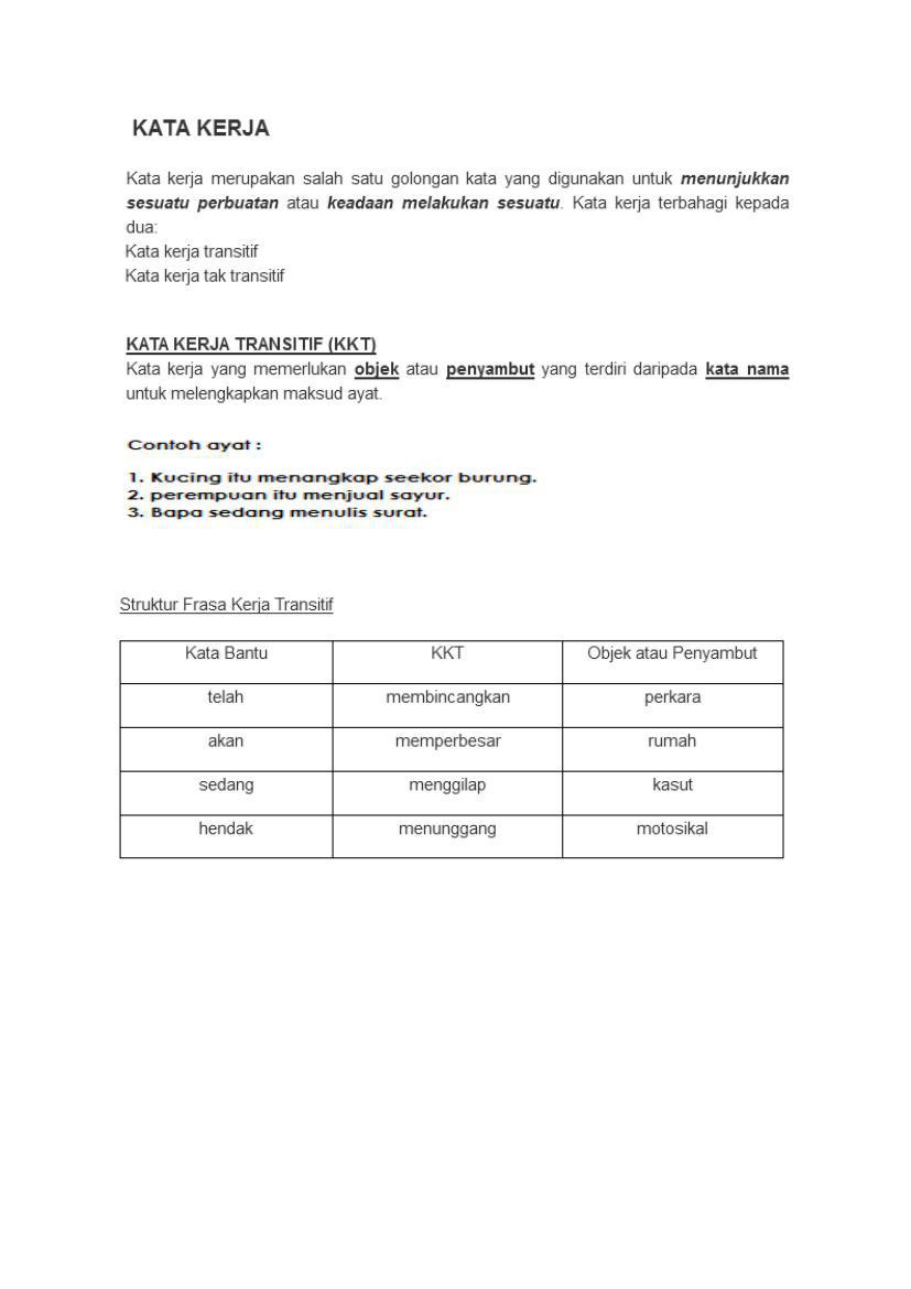 Nota Rujukan Kata Kerja Transitif Pdf Document