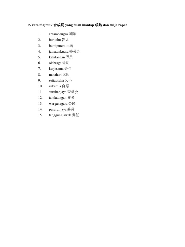 15 Kata Majmuk合成词 Yang Telah Mantap成熟 Dan Dieja Rapat