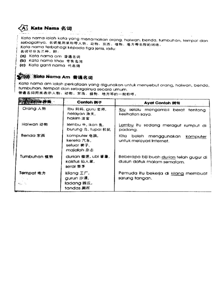 Bahan Pengajaran Bahasa Melayu Sekolah Rendah Kata Nama