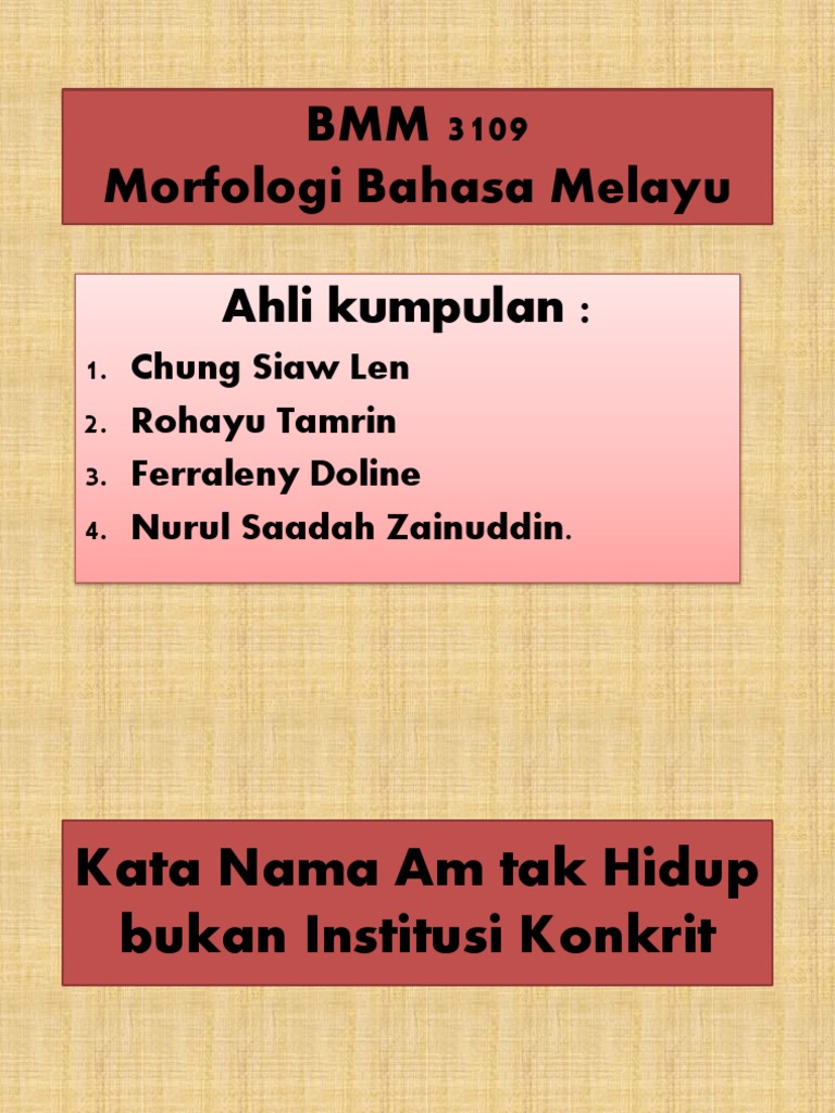 Kata Nama Am Tak Hidup Bukan Institusi Abstrak Tak Berbilang